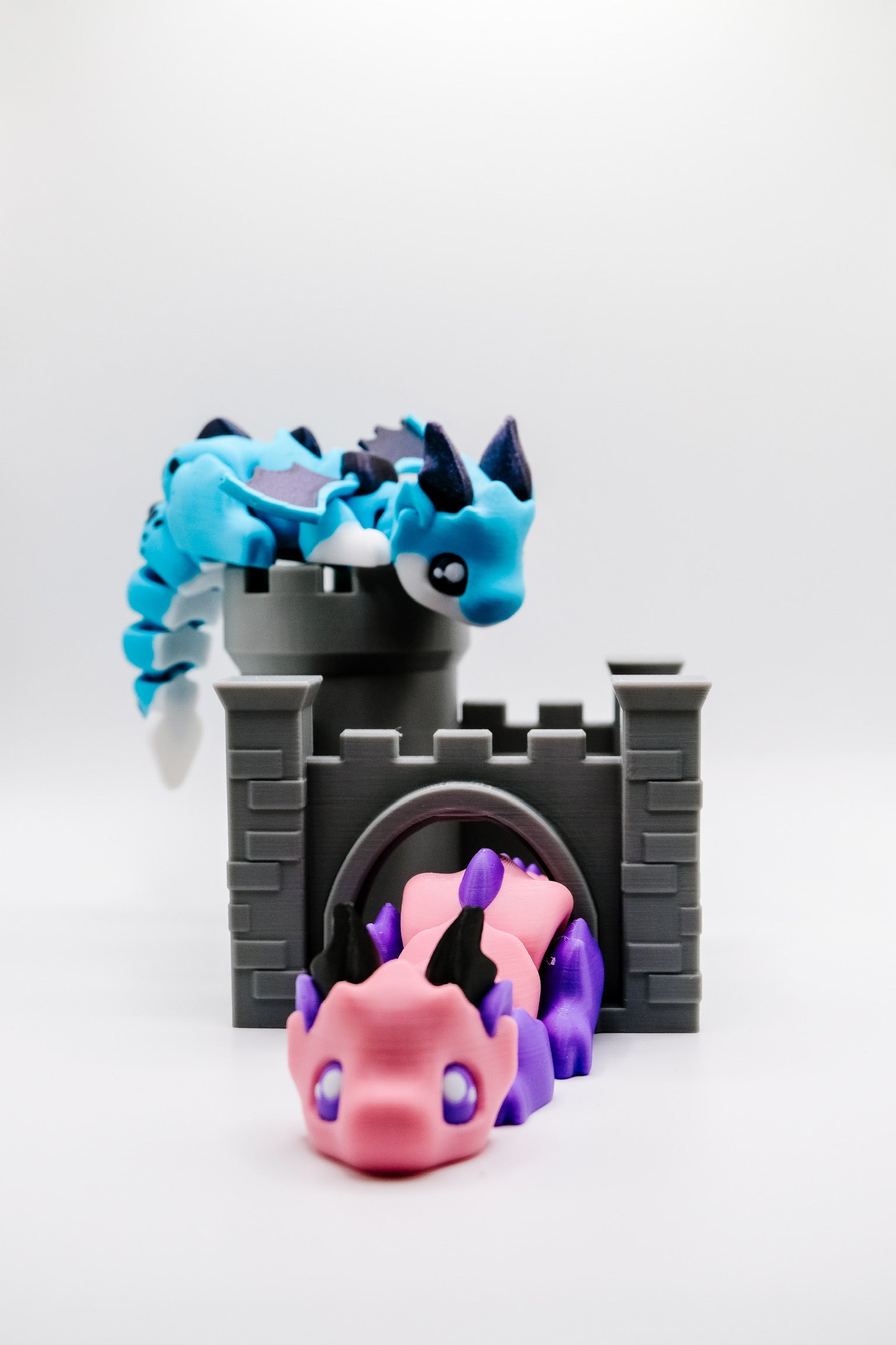 Add a touch of fantasy and charm to your space with this adorable set featuring two flexi mini dragons and their cozy castle lair. Perfect for desks, shelves, or imaginative play, this trio brings magic wherever it lands!